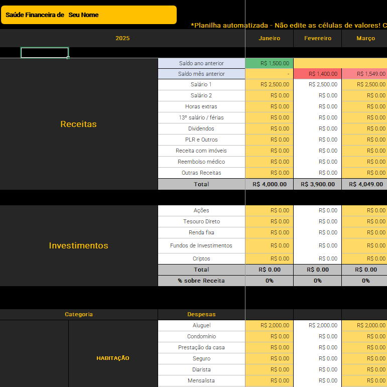 Nossa planilha automatiza o controle de receitas e despesas para facilitar seu planejamento financeiro.