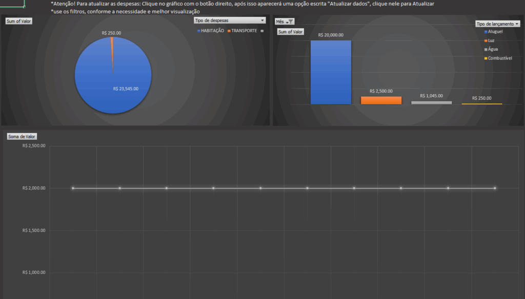 Visualize suas finanças com gráficos intuitivos para melhor análise.